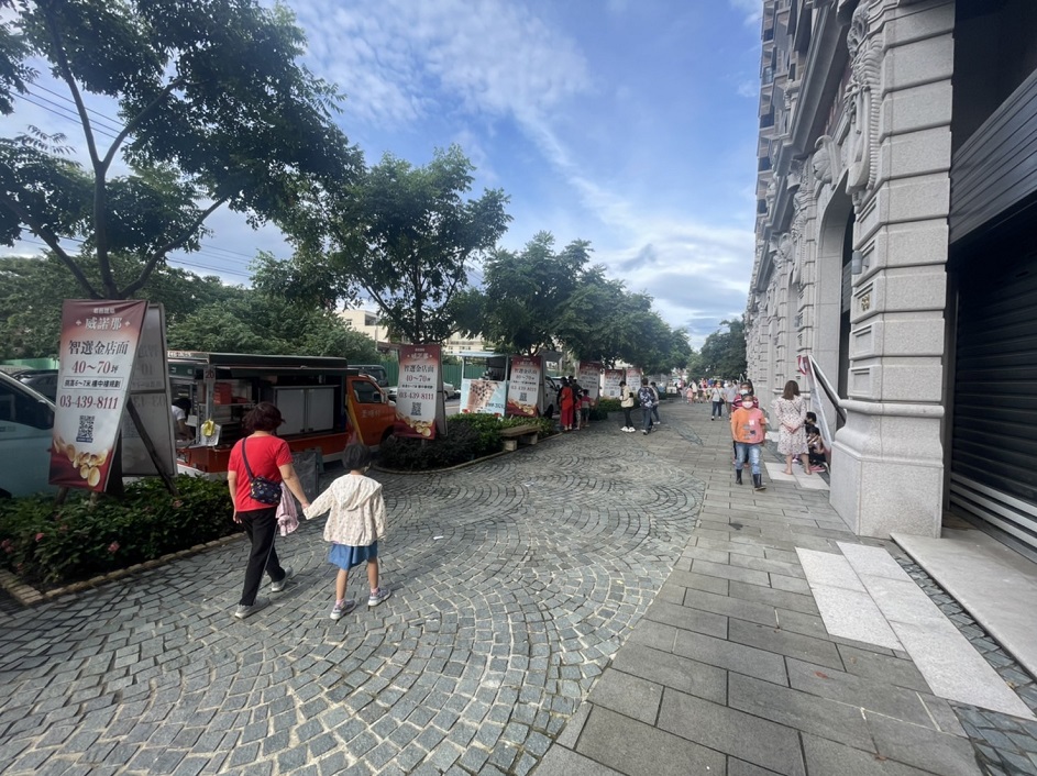 市集範圍涵蓋社區大廳、羽球場及外圍迴廊,當日有許多文創產品、美式胖卡餐車及在地小吃攤商進駐,一早的壞天氣也在市集展開前一刻如期放晴,好似老天爺也在期待著這場中秋市集饗宴。居民們沿著歐風街道漫步其中,或坐或臥好不愜意,讓人彷彿置身歐洲市集,讓人們因疫情影響許久不能出國的遺憾,似乎在這次活動當中得到小小的滿足。